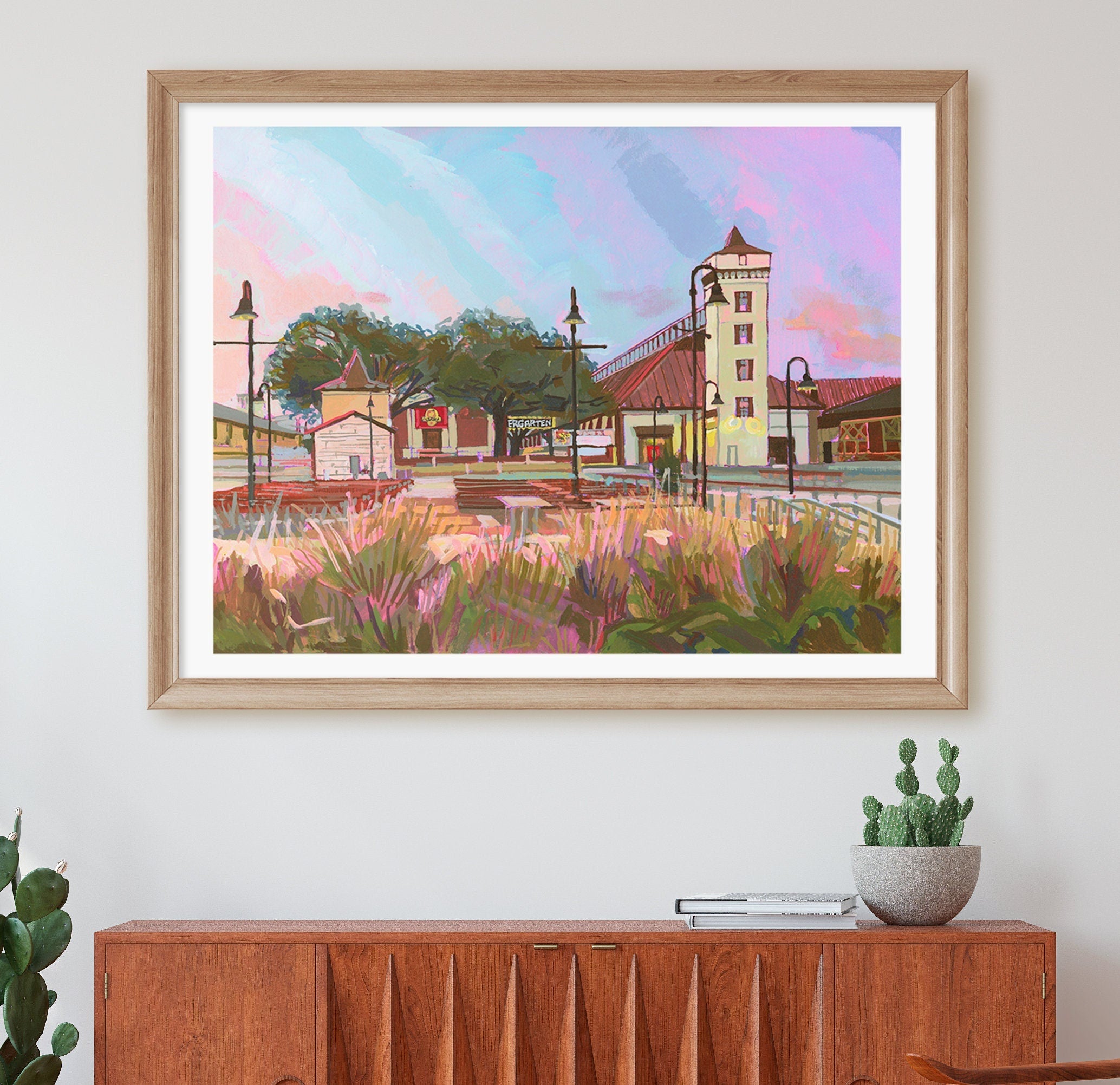 Colorful Texas paintings and prints of the best places to visit all over Texas to brighten your walls. My Texas Places to Visit art series is a curated contemporary Texas art collection perfect for art lovers of iconic Texas places, and Texas travel. Made in Texas with nostalgia by an artist from Austin, and 5th-generation Texan.